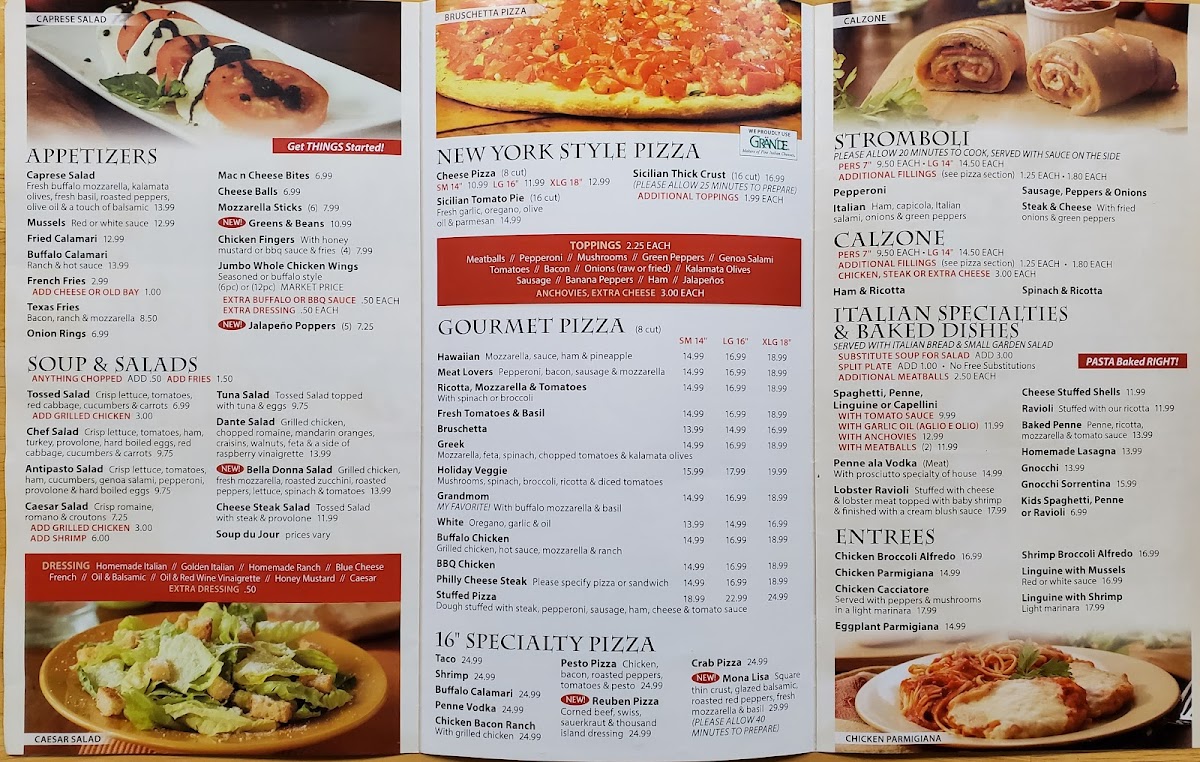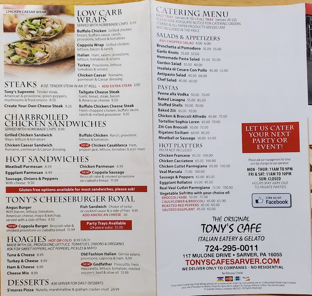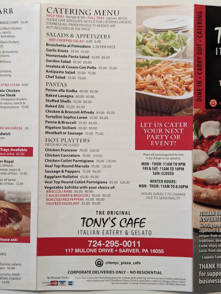 Tony's Pizza Cafe Menu